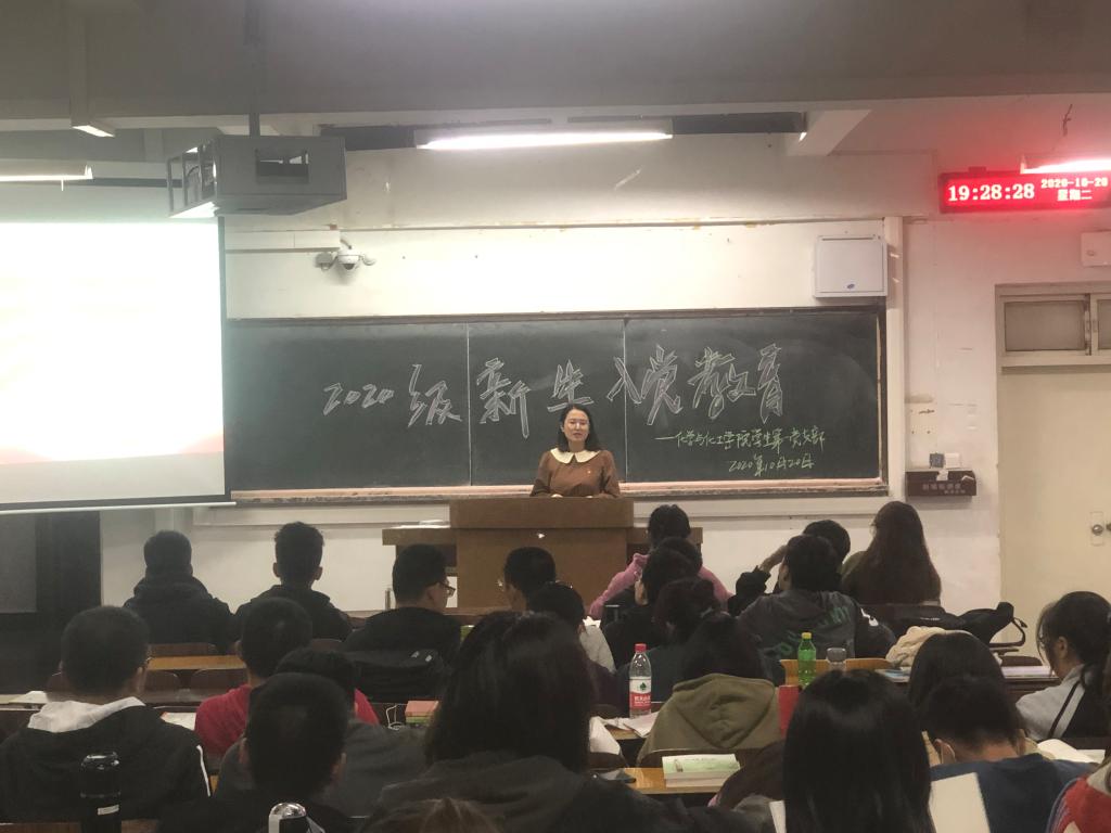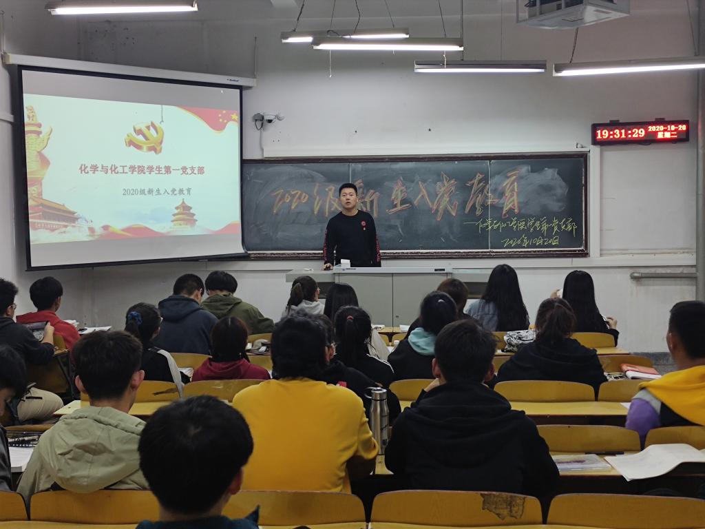 2020年10月20日晚19:30英国威廉希尔公司员工第一党支部在春晖学堂组织开展了2020级化学工程与工艺专业全体新生入党教育活动。此次活动按照班级发分三组进行,分别由组织委员张旭、宣传委员王桂娜组织开展。