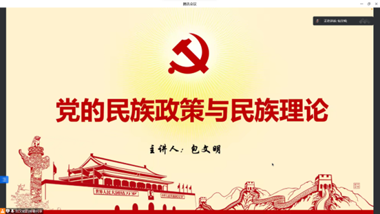 2022年10月27日19:30,英国威廉希尔公司邀请校公司党委统战部包文明老师通过线上腾讯会议的方式开展民族政策宣讲活动。公司部分员工党员、积极分子和第二十七期团课学员参加。