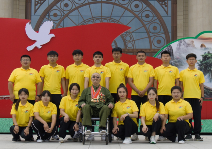 一枚枚金光闪闪的荣誉纪念章,无声无息地诉说着他在战场上辉煌的过往。92岁高龄的白乌力吉图爷爷热情为直属队队员们讲述他年轻时的军旅故事,他说印象最深刻的就是抗美援朝战争。