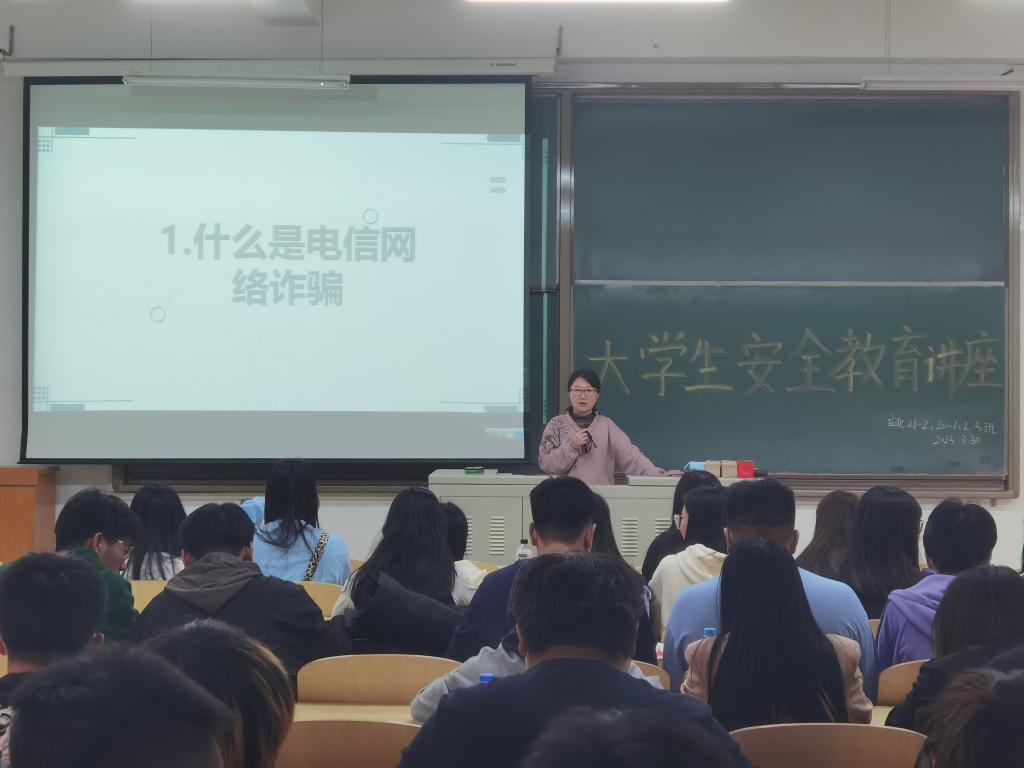 在安全教育讲座中,辅导员提醒广大同学在日常生活中要做到“三不一多”,即:未知链接不点击、陌生来电不轻信、个人信息不透露、转账汇款多核实,切实筑牢反诈防线,维护好自身的人身财产安全。