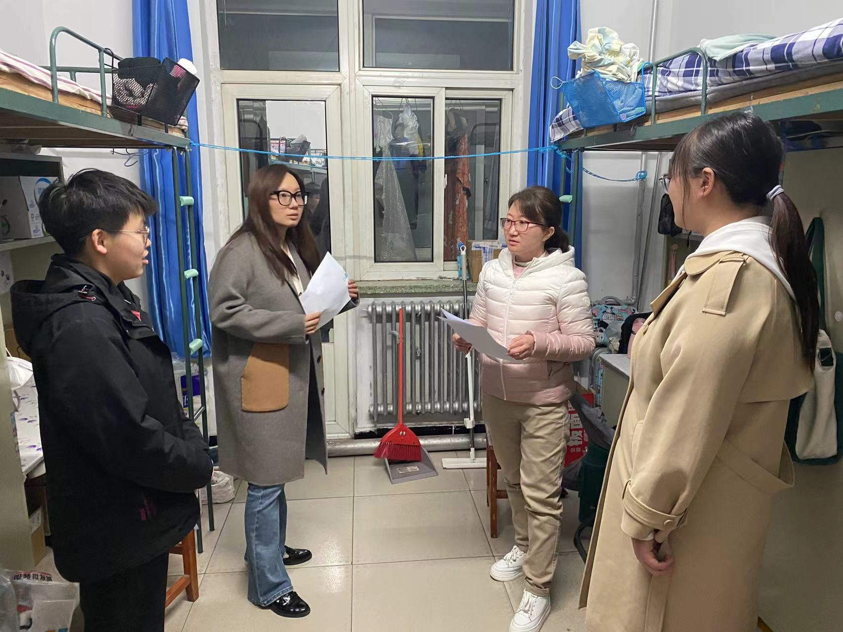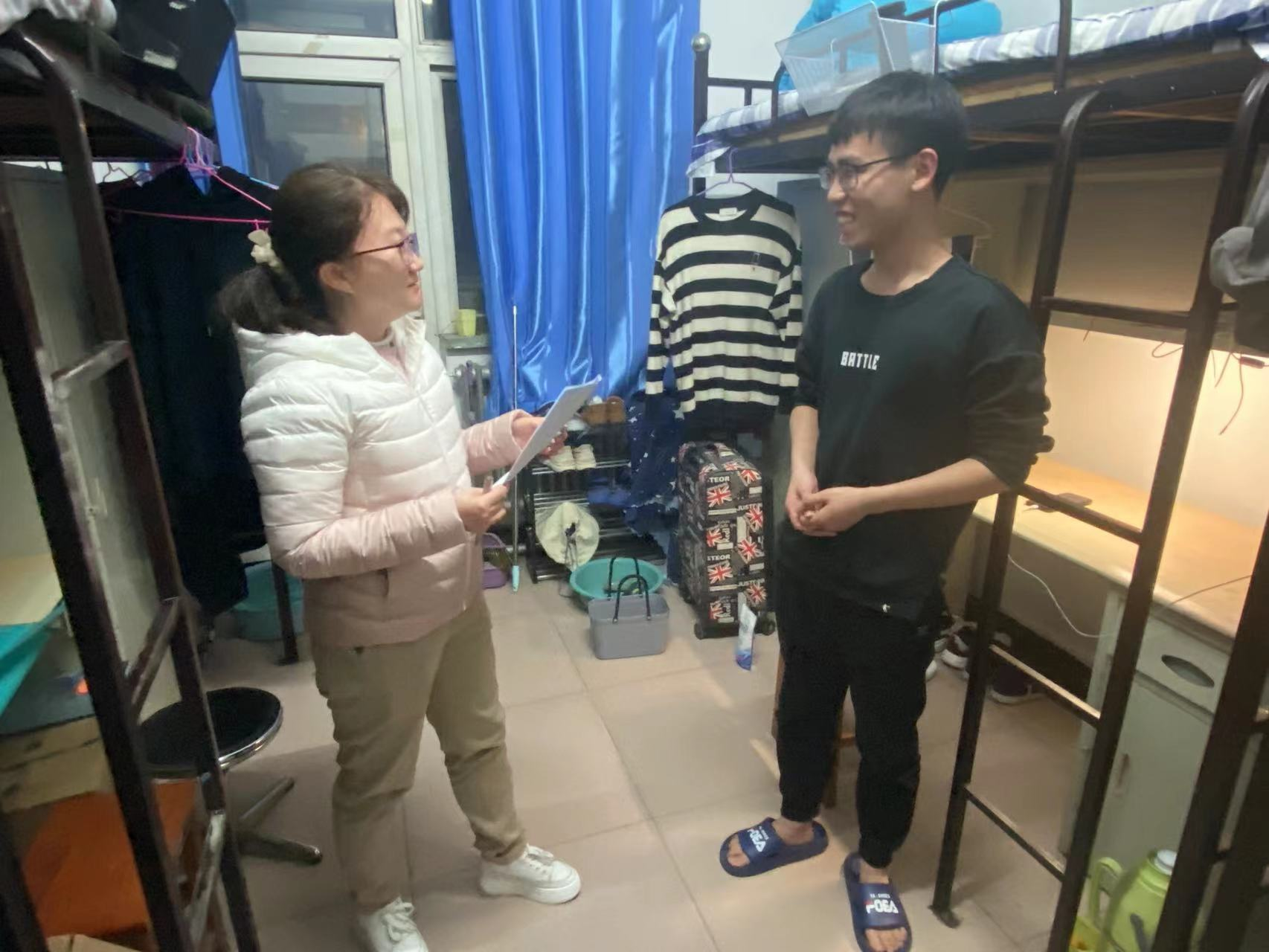 本次工作重点检查宿舍卫生、消防安全和用电安全,提醒同学们及时整改宿舍中存在的问题,努力创建“文明宿舍”。走访过程中,两位老师与研究生进行深入交流,了解员工们的生活、学习及科研情况,教育引导广大研究生自觉遵守校规校纪及公寓管理制度,禁止在宿舍内给电动车充电,杜绝晚归、夜不归宿、在宿舍吸烟、酗酒等不良行为,展现科大学子良好的精神风貌。