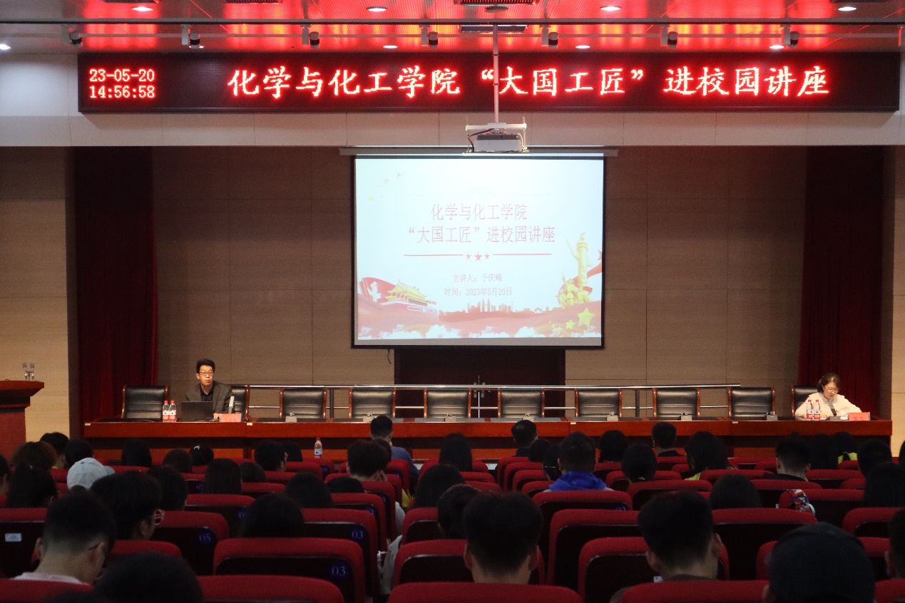 2023年5月20日下午,公司在图书馆B201举办“大国工匠”进校园讲座活动。本次讲座主讲嘉宾是一机集团于庆峰工程师,公司经理李松波,公司党委副书记副经理冀虹,辅导员、员工党员、入党积极分子、员工代表近290人参加本次讲座。