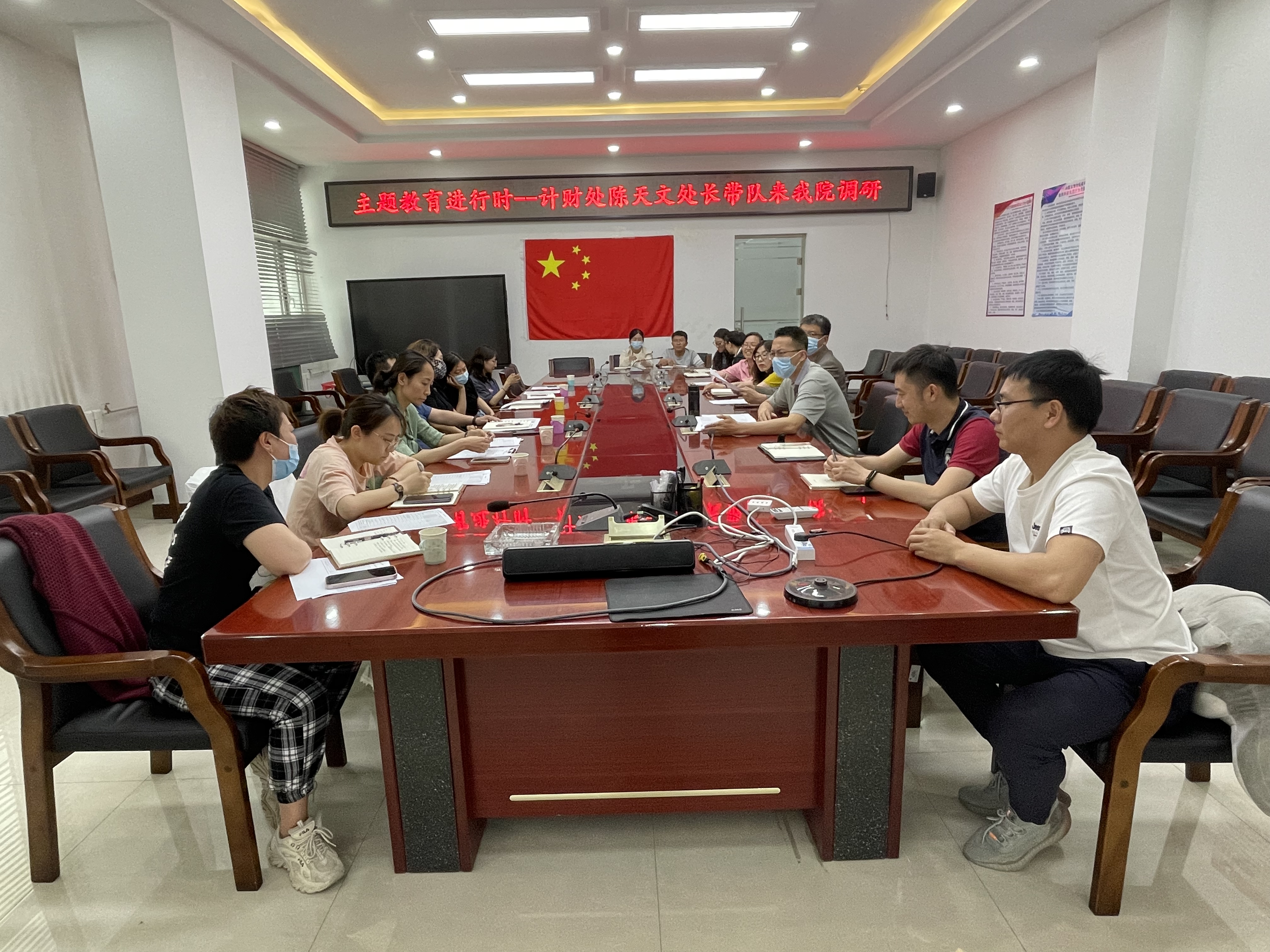 2023年5月31日上午,公司计财处处长陈天文一行7人来公司逸夫楼E202会议室开展调研工作。公司领导班子成员、各科室工作人员及各系部负责人参加了本次调研会。