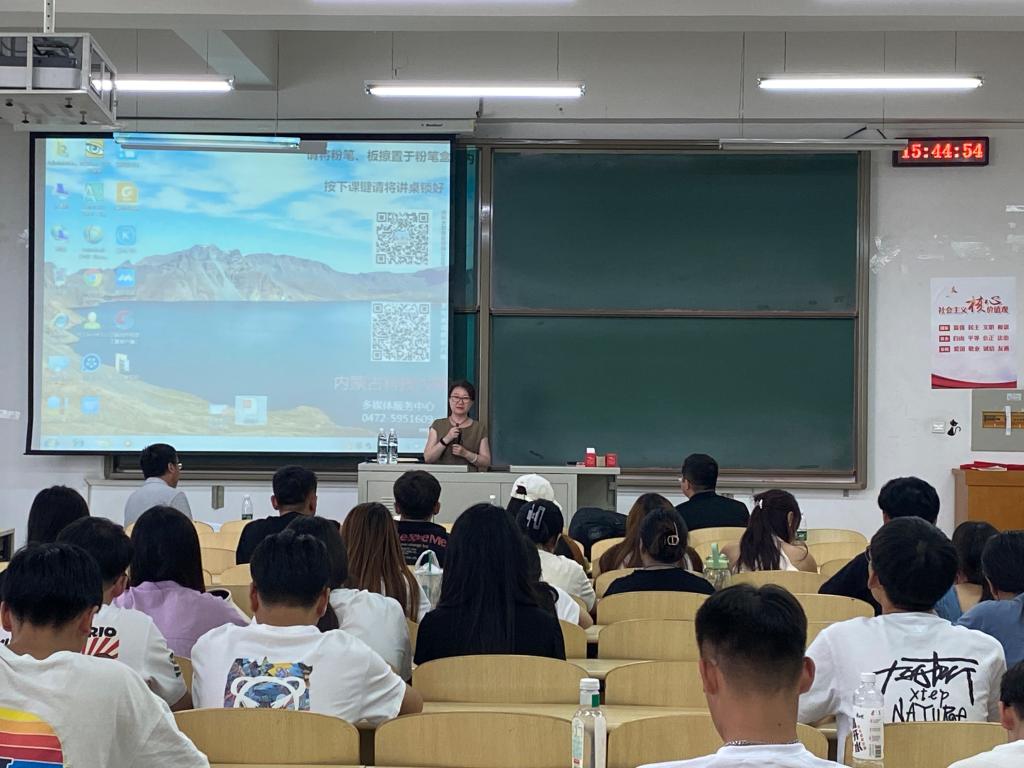 内蒙古荣曜科技有限公司总经理胡立业主要围绕个人理想、在校生活及就业建议等方面与在座员工进行深入交流,并分享就业创业经验,激励同学们要持续学习,不断完善自我、提高自我。