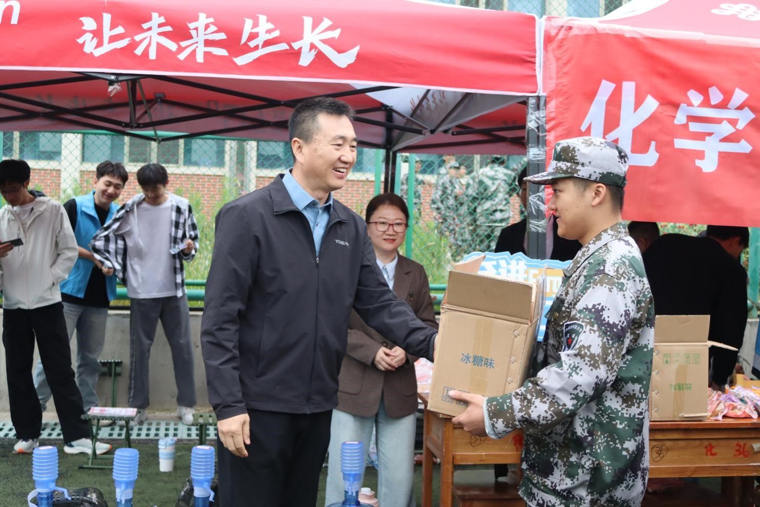 为让新生度过一个欢乐祥和的中秋佳节,感受来自公司的温暖与祝福,9月14日下午,公司党委书记杨包生、副书记副经理冀虹及全体辅导员一行,带着公司对新生的深切关怀与殷切期望,深入军训场地,看望并慰问正在紧张军训的2024级教官和新生。
