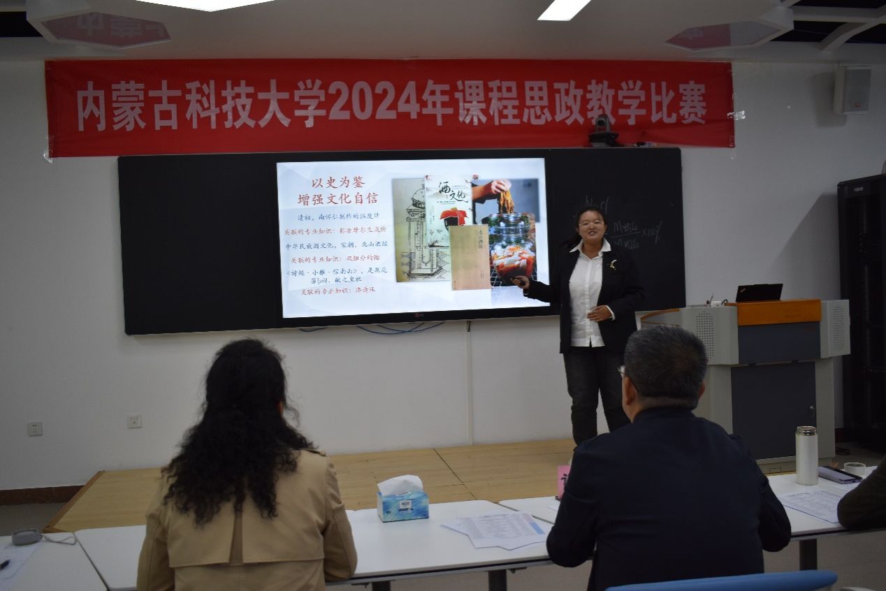 参赛教师结合课程特点通过说课的形式,深入挖掘课程思政元素,通过生动的案例引入,详细阐述了课程思政教学设计的思路及内容。经评审专家对参赛教师的教学内容、教学方法与手段、教学目标、教学评价、教学反思等各评价指标进行综合评审,赵悦、周蔚、白佳权获一等奖,艾晶、王丽获二等奖,常翩翩获三等奖,公司获优秀组织奖。赵悦、周蔚、白佳权三位教师将会被推荐参加第四届全区本科高校课程思政教学比赛。