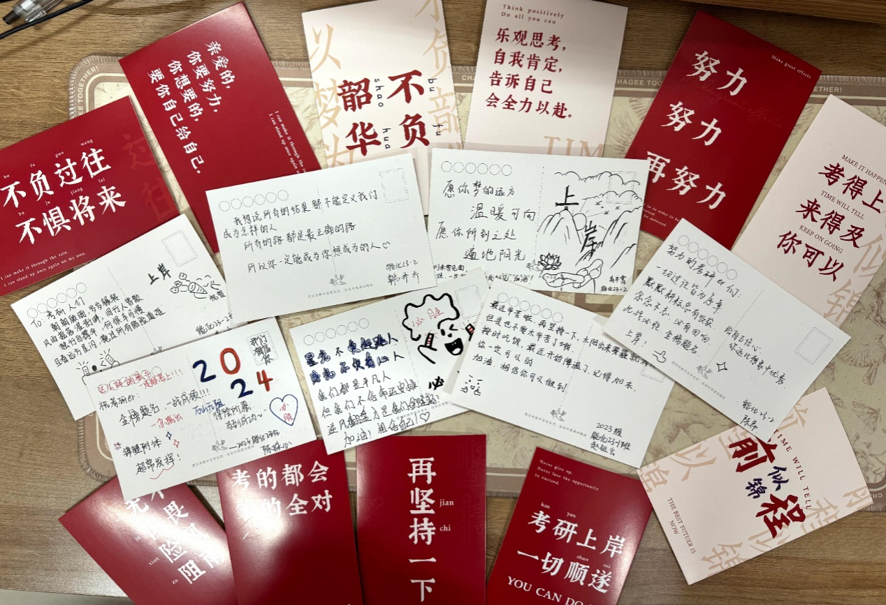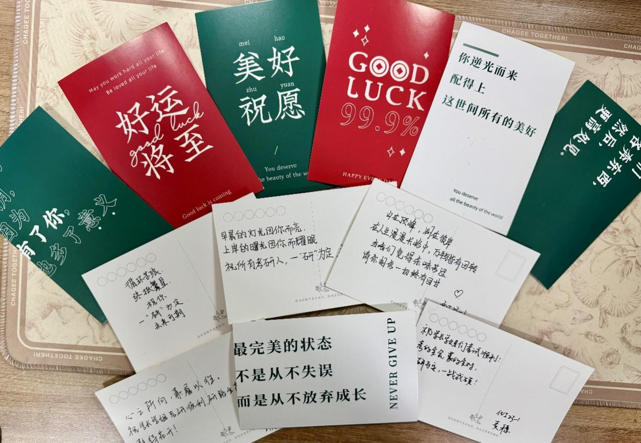 活动最后,公司为每位考研学子送去了寓意美好的礼物及来自老师和学弟学妹的祝福卡片,表达了公司的关怀和同学们的美好祝愿,增强了同学们备考的信心和动力。