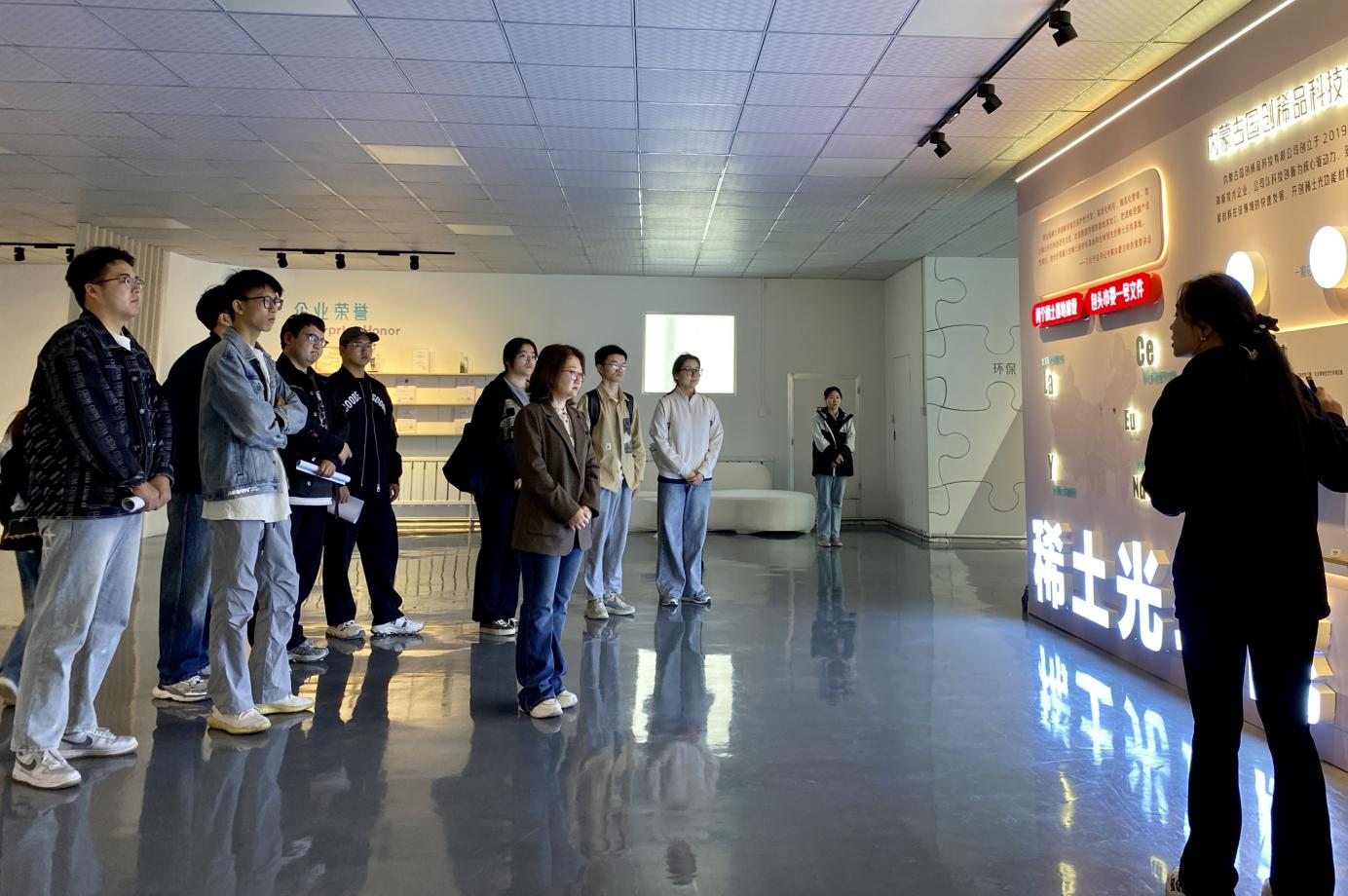 在企业负责人的带领下,师生依次参观企业展厅、生产车间、办公生活等区域,近距离了解了企业稀土光功能材料与终端应用的研发,涵盖稀土光转化、稀土发光、稀土光显色三大领域,体验了稀土RES彩色墨水屏系列等终端应用产品。通过实地参观、座谈交流等方式,详细了解了企业的发展状况、业务范围以及人才需求,使员工们实际感受了真实职场环境。