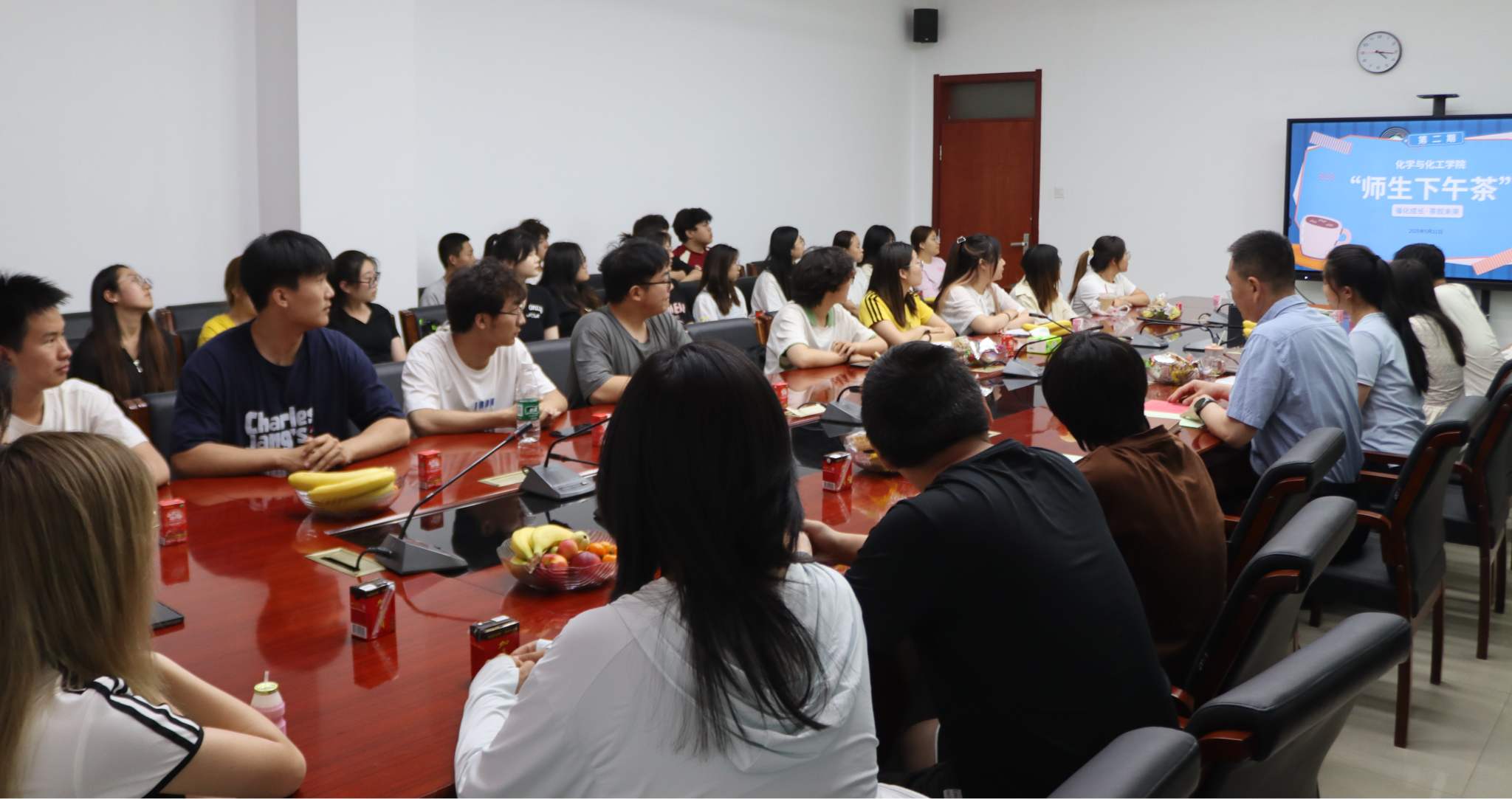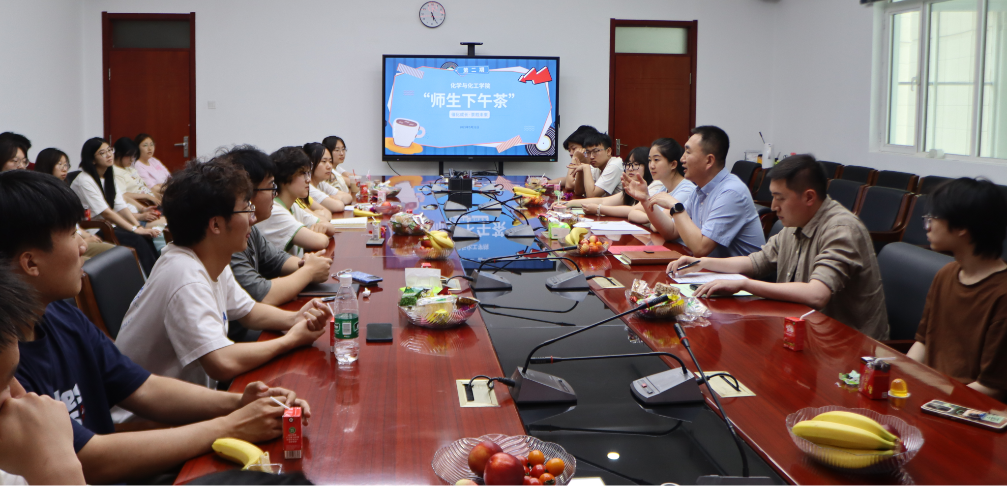 2025年5月21日下午,英国威廉希尔公司第二期“师生下午茶”活动在逸夫楼E202温馨举行。本次活动以“催化成长·茶叙未来”为主题,公司党委书记杨包生、辅导员亢智鹏、班主任殷赫男、副班主任贾双宁及应用化学23级2班全体员工共同参与。
