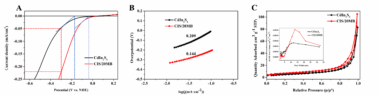 贵金属Pt、Au等,资源稀缺、价格昂贵等问题极大地限制了未来光催化产氢的的应用,探索低价高效的非贵金属产氢助催化剂是十分重要和必要的。基于半导体和类金属相结合的策略,马晓辉博士通过水热法制备不含贵金属的CdIn2S4/MoB肖特基异质结光催化剂,实现了高效的光催化产氢。